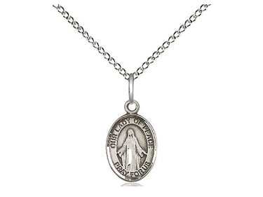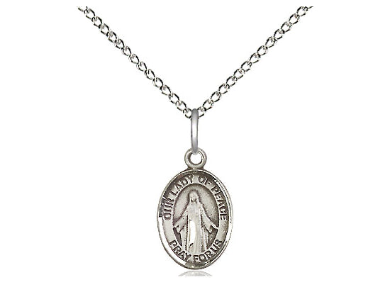 Small Sterling Silver Our Lady of Peace Pendant Necklace 1/2 x 1/4 - 18 Inch Chain