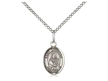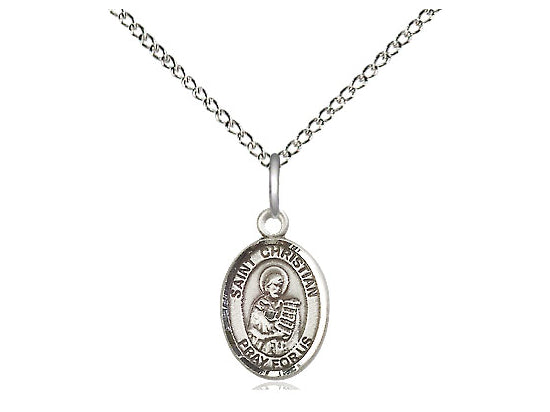 Small Sterling Silver St. Christian Demosthenes Pendant Necklace 1/2 x 1/4 - 18 Inch Chain