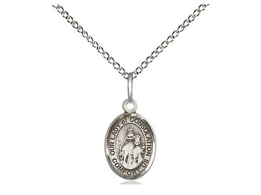 Small Sterling Silver Our Lady of Consolation Pendant Necklace 1/2 x 1/4 - 18 Inch Chain