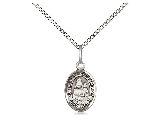 Small Sterling Silver Our Lady of Prompt Succor Pendant Necklace 1/2 x 1/4 - 18 Inch Chain