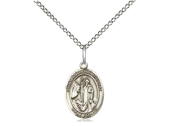 Small Sterling Silver St. Anthony of Egypt Pendant Necklace 1/2 x 1/4 - 18 Inch Chain