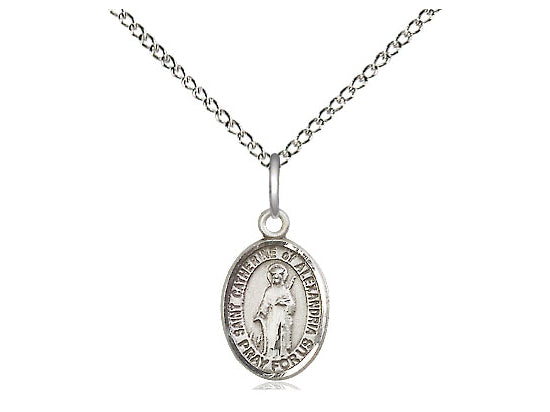 Small Sterling Silver St. Catherine of Alexandria Pendan Necklace 1/2 x 1/4 - 18 Inch Chain