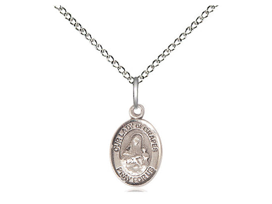 Small Sterling Silver Our Lady Of Grapes Pendant Necklace 1/2 x 1/4 - 18 Inch Chain
