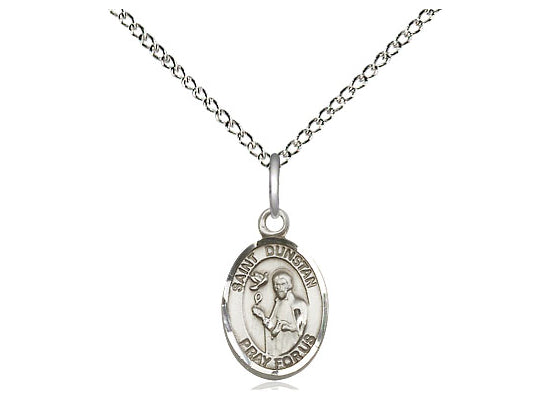 Small Sterling Silver St. Dunstan Pendant Necklace 1/2 x 1/4 - 18 Inch Chain