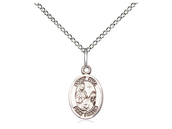 Small Sterling Silver St. Fina Pendant Necklace 1/2 x 1/4 - 18 Inch Chain