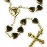 Brown Glass Bead Catholic Rosary | 10mm Heart Beads | 24" Sacred Heart Design | Italian Crucifix | Boxed Gift