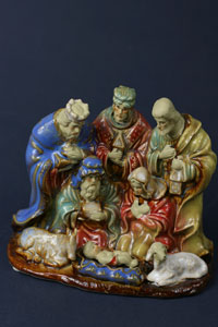 4. 5" x 5. 5" x 3. 5" (h x w x d) glazed ceramic nativity figurine.