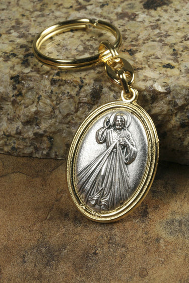 Divine Mercy Keychain | Gold-Tone Italian Catholic Medal | RosaryCard