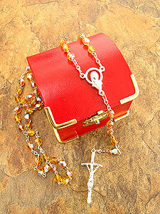 Amber Glass Beads with Papal Crucifixs