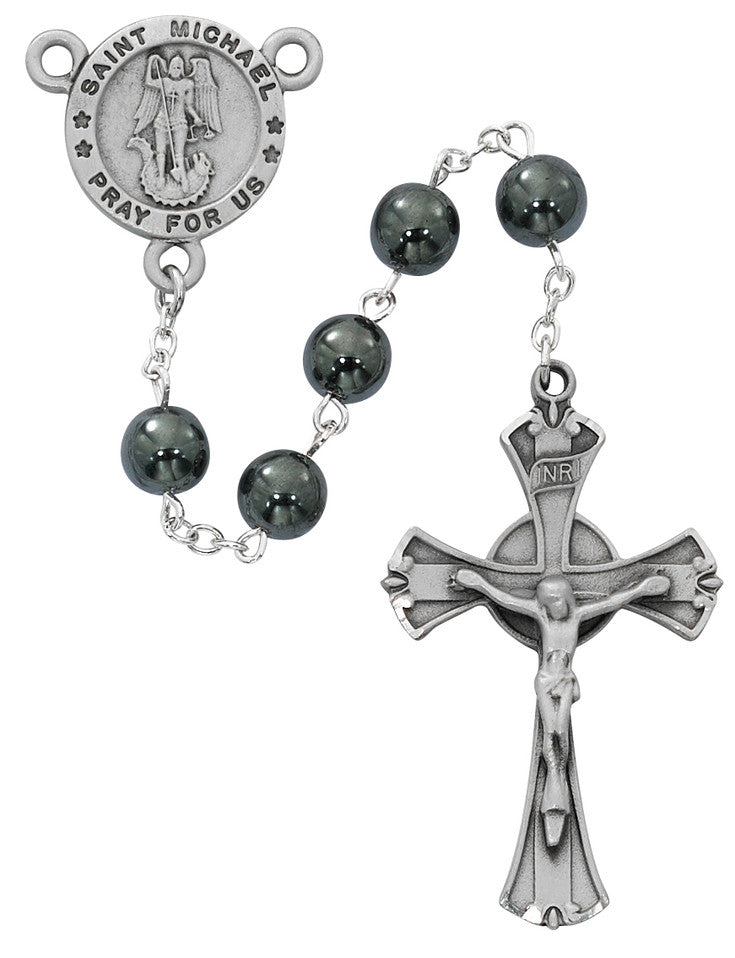 8mm Hematite St. Michael Rosary | Pewter Crucifix | Gift Box