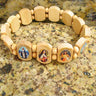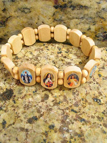 Natural Wood Stretchable Catholic Bracelet with Holy Images