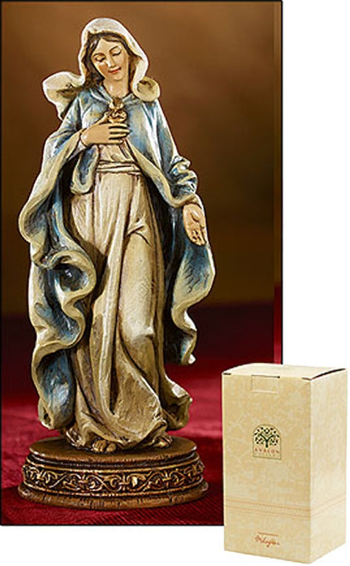 6" Immaculate Heart of Mary Statue | Hand-Painted Catholic Religious Figurine | RosaryCard