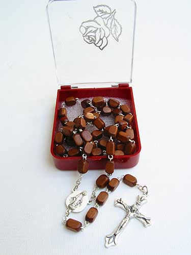 Rectangular Wood Bead Rosary RDS148-01