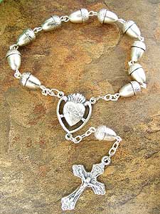 Silver tone all metal 1 decade rosary with 10mm acorn beads. Very sturdy rosary. Imported from italy.