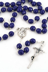 Large Rosary with Blue Faceted Beads. Bead Size: 10mm. Total Length: 24". Crucifix: 2.25