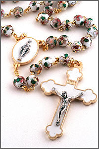 Intricate White Enamel Cloisonne Rosary ROSCL00063