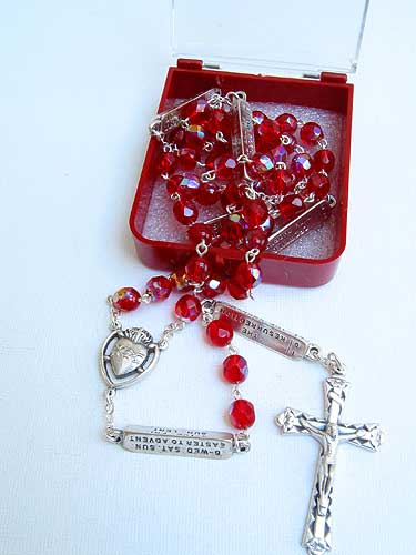 7mm Red Aurora Borealis Glass Bead Rosary Mysteries Rosary