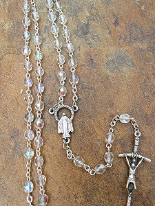 5mm Clear Aurora Borealis Glass Bead Rosary