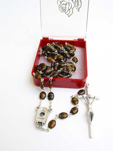 7mm Flat Multi-Color Oval Flat Marble Glass Bead Lourdes Rosary