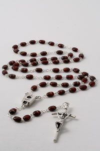 Length: 22". Rosary Features 7mm Oval Flat Multi-color Marble Brown Beads with Silver Plated Links, Center and 2" Oxidized Crucifix. The center contains Holy Water From Lourdes. Imported.Comes in Plastic Box. The Color and Shape of the Box May Vary.