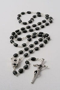 Length: 22". Rosary Features 7mm Oval Flat Multi-color Marble Brown Beads with Silver Plated Links, Center and 2" Oxidized Crucifix. The center contains Holy Water From Lourdes. Imported.Comes in Plastic Box. The Color and Shape of the Box May Vary