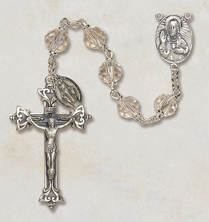 Sterling Silver/6MM Crystal Bead 1 3/4" Crucifix Heirloom Quality Rosary Comes in a Gift BoxCenturies ago expert Bohemian craftsmen developed handcrafted tin cut crystal beads that are still produced today. Creed is proud to offer these Austrian crystal beads in our elegant loc-link construction with both sterling silver and Italian silver oxidized centers and crucifixes. Each masterpiece created by Creed carries with it The Creed Lifetime Guarantee. We are committed to upholding a tradition of quality that began over 75 years ago.