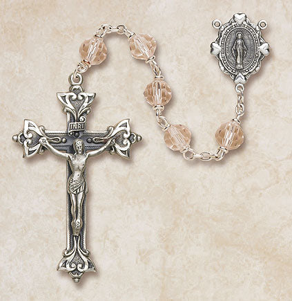 Sterling Silver/6MM Crystal Bead 1 3/4" Crucifix Heirloom Quality Rosary Comes in a Gift BoxCenturies ago expert Bohemian craftsmen developed handcrafted tin cut crystal beads that are still produced today. Creed is proud to offer these Austrian crystal beads in our elegant loc-link construction with both sterling silver and Italian silver oxidized centers and crucifixes. Each masterpiece created by Creed carries with it The Creed Lifetime Guarantee. We are committed to upholding a tradition of quality that began over 75 years ago.