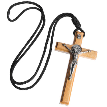 St. Benedict Crucifix Necklace - 3.5" Wooden Cross with Rope Cord