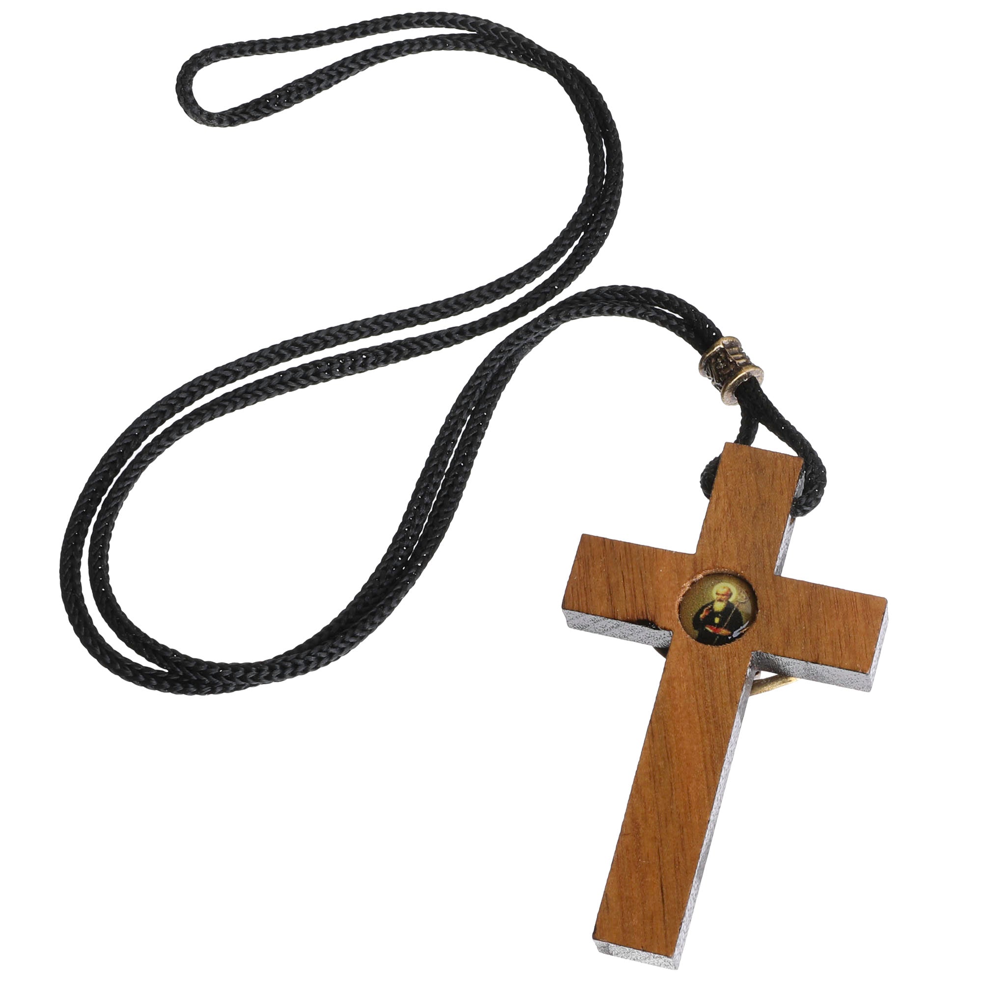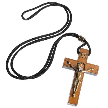 St. Benedict Crucifix Necklace - 3" Wooden Cross with Black Rope Cord