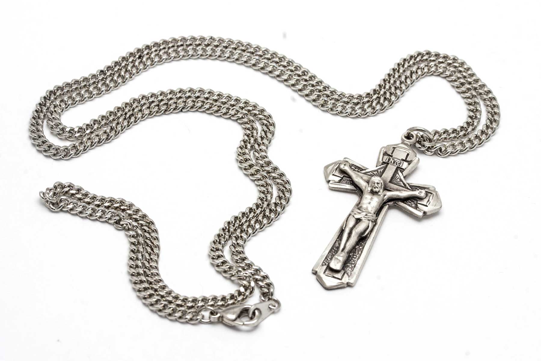 Large Sterling Silver Crucifix Necklace - Handcrafted Catholic Jewelry