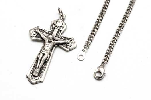 This large crucifix necklace makes a meaningful gift for Confirmation, RCIA completion, Baptism, First Communion, ordination, Easter, or Christmas. Its substantial size and premium sterling silver construction make it appropriate for men, women, and older boys seeking a prominent expression of their Catholic faith. The 24-inch chain length provides comfortable wear for everyday devotion or special religious ceremonies.