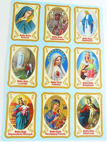 Blessed Mary Stickers. Nine stickers per sheet. High quality print. Sheet size: 4.5" x 5.25". Each sticker is approx: 1.5" x 1.75".
