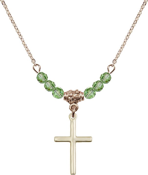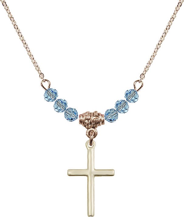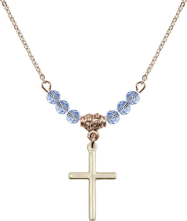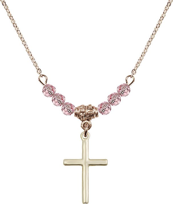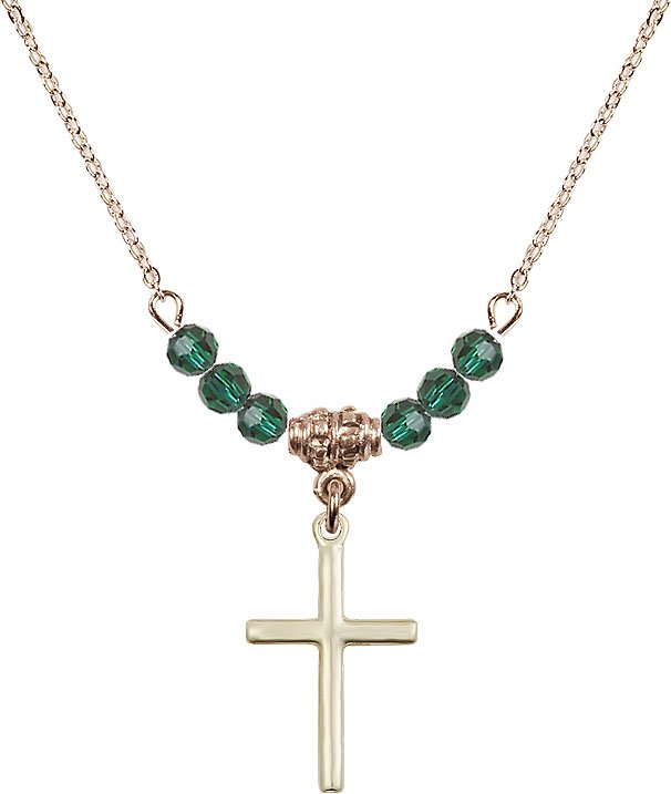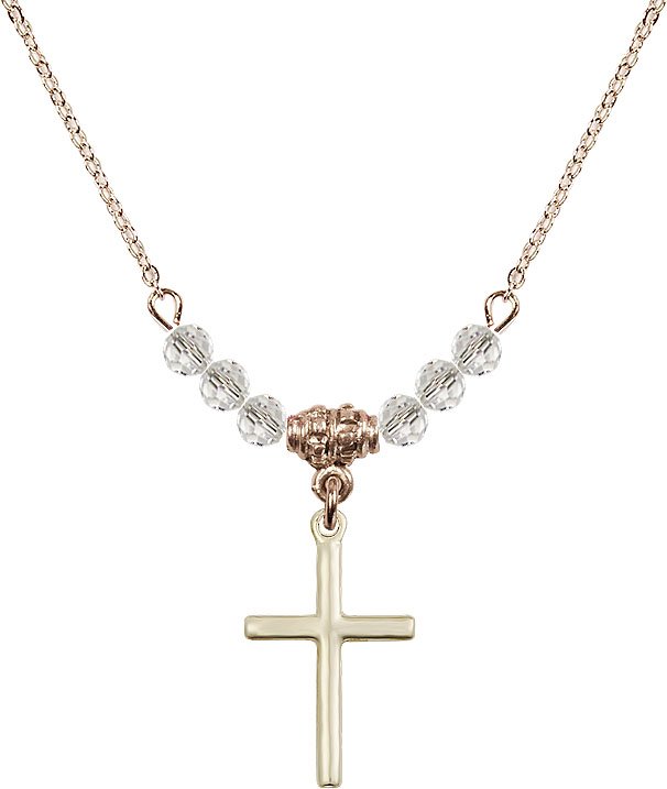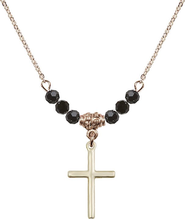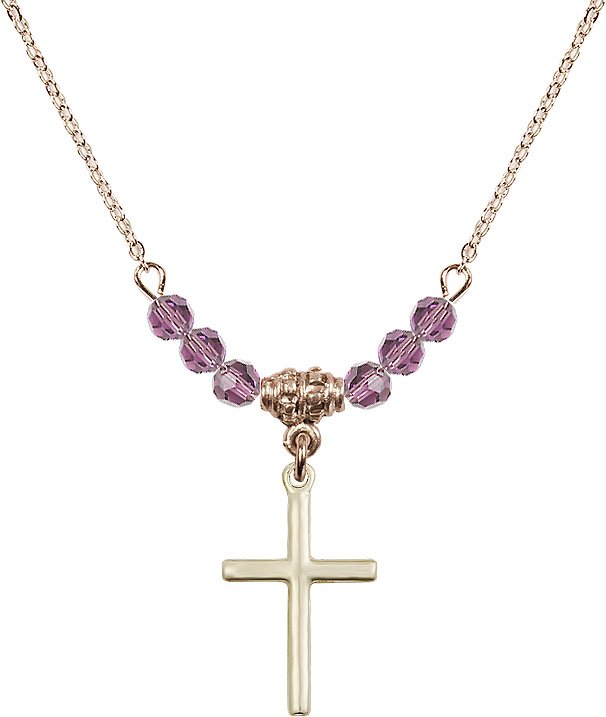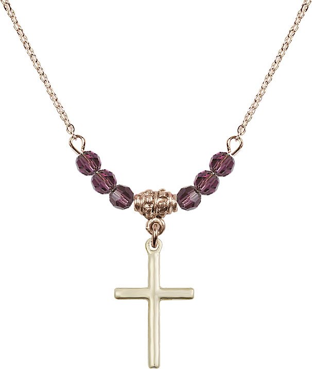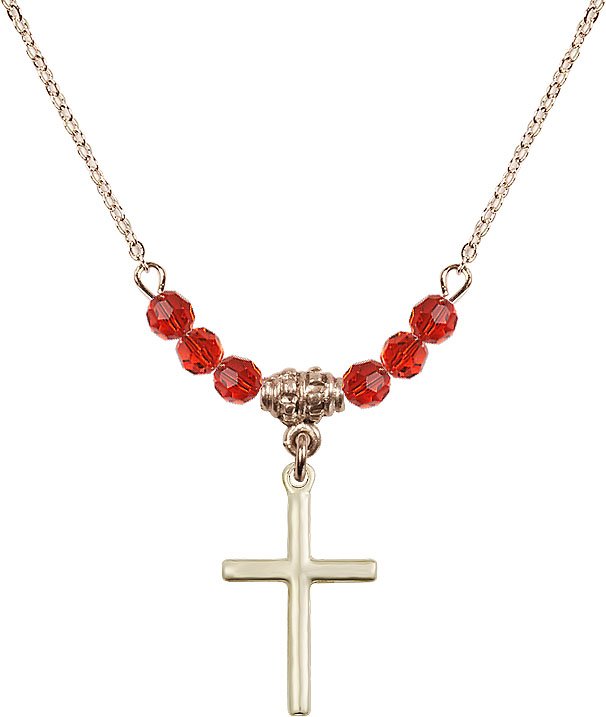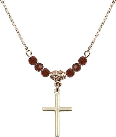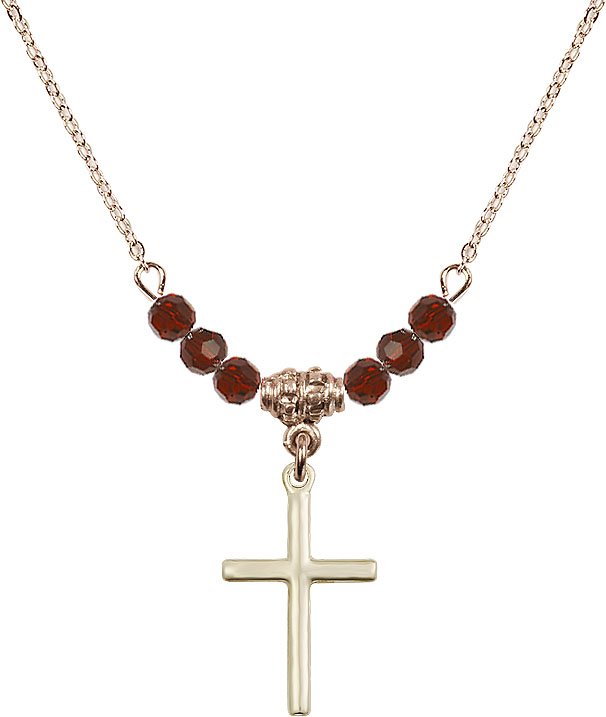 18" Hamilton Gold Plated Necklace with 4mm Garnet Crystal Beads featuring a 14kt Gold Filled Cross Medal.