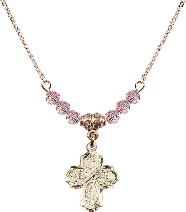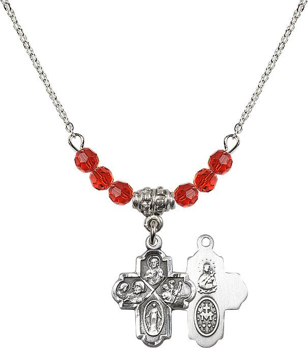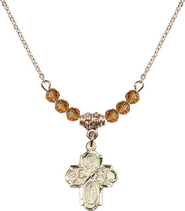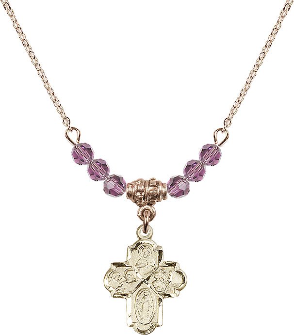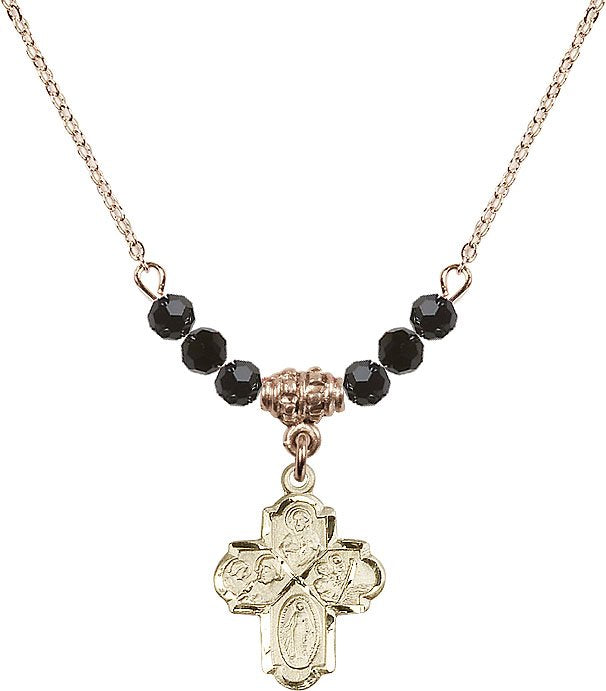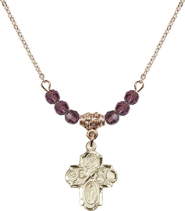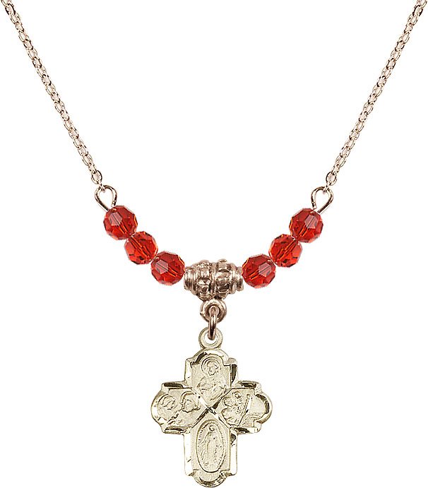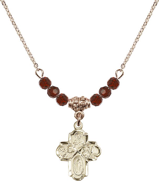 18" Hamilton Gold Plated Necklace with 4mm Garnet Crystal Beads featuring a 14kt Gold Filled 4-Way Medal.