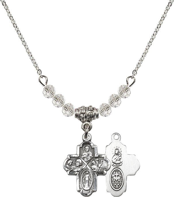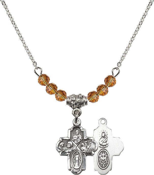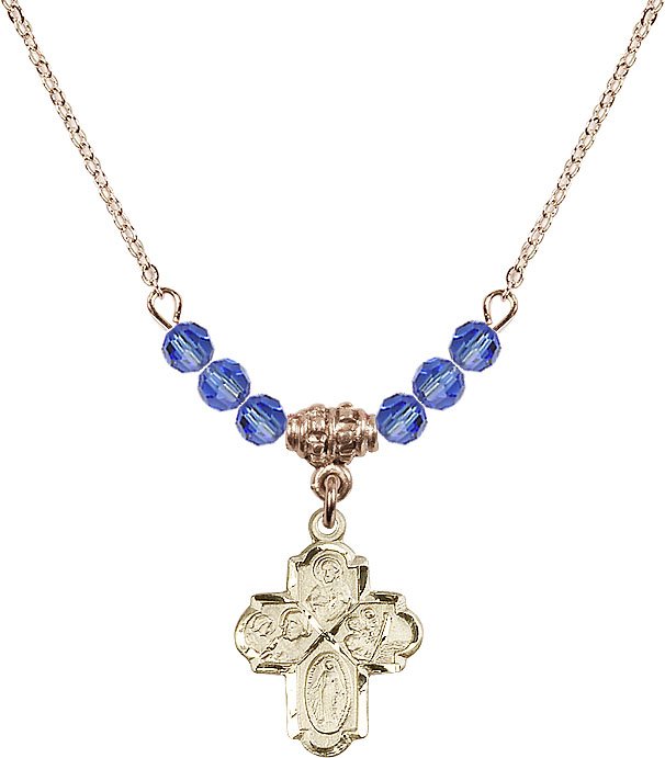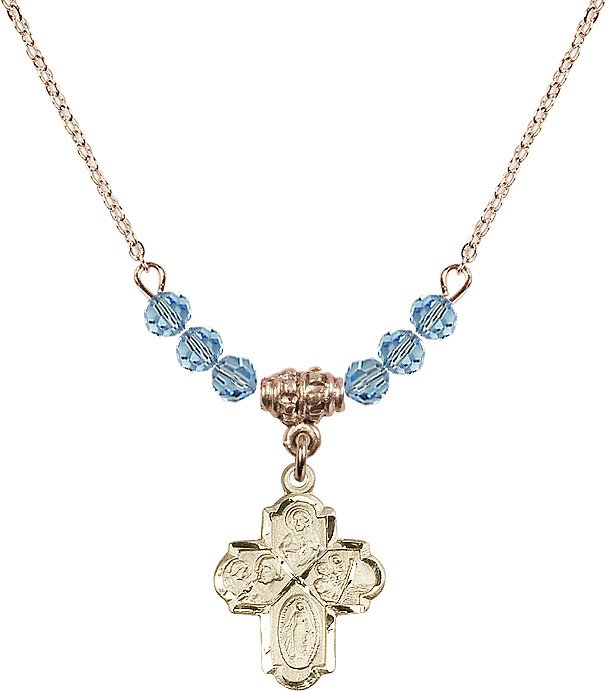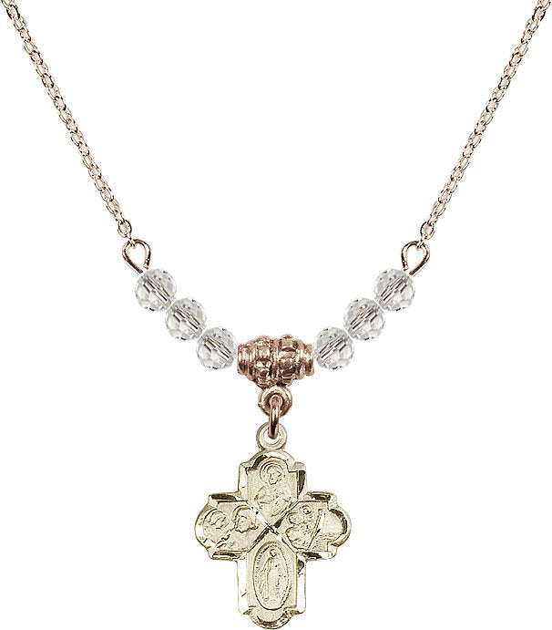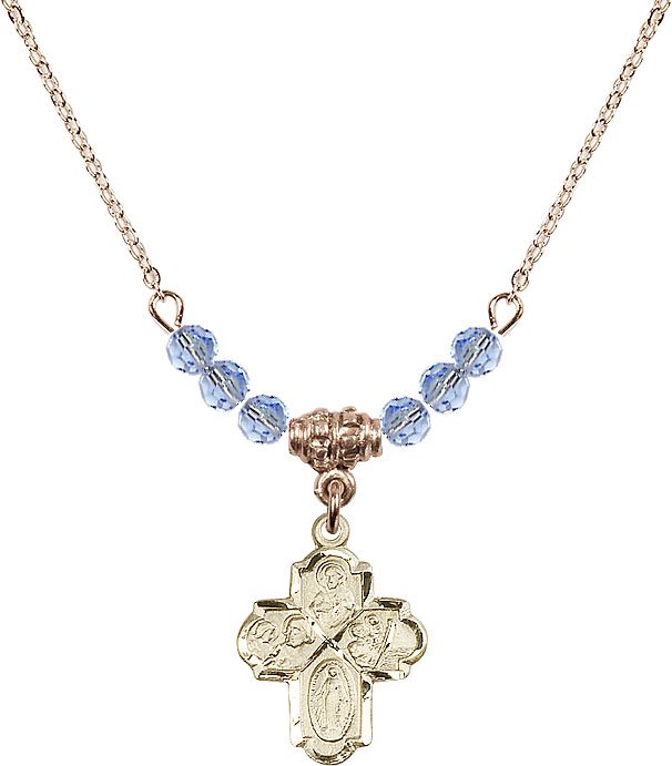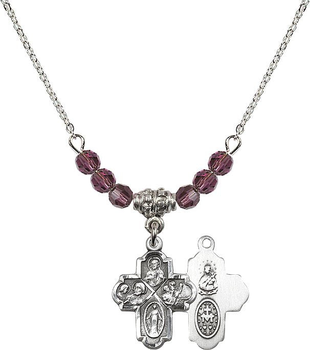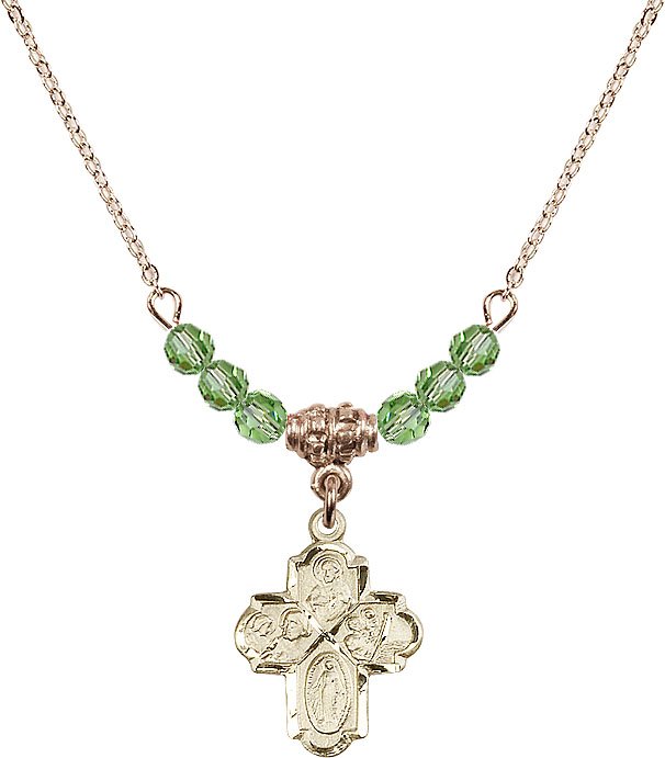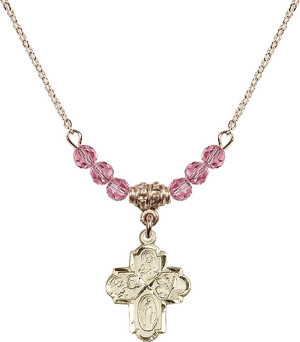 18" Hamilton Gold Plated Necklace with 4mm Garnet Crystal Beads featuring a 14kt Gold Filled 4-Way Medal.