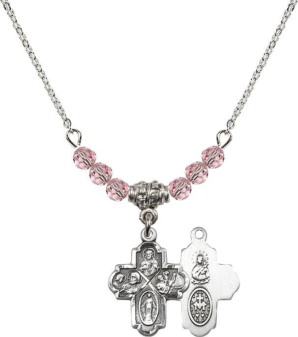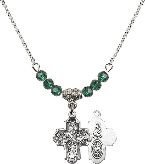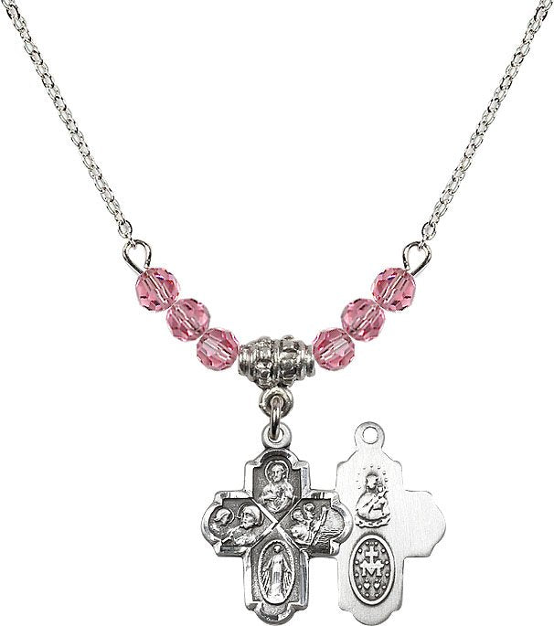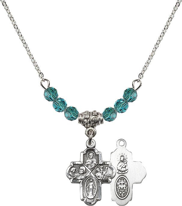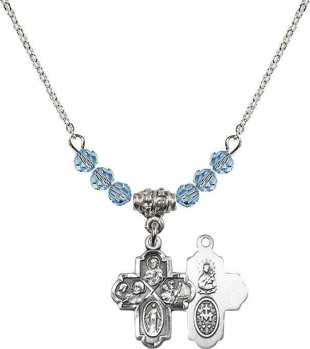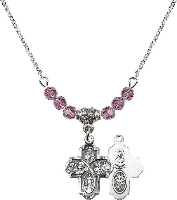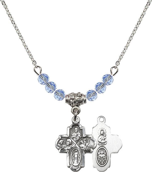 Women's Four Way Cross Birthstone Necklace | 3/4 inch