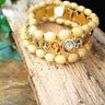 Wood Catholic Bracelet with Holy Medals | Double Row Design | Golden Tone Links | Handcrafted Religious Bracelet