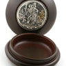 Wood Rosary Box with St Christopher Icon | 3.5" Diameter | Holds 12mm Beads | Handcrafted in Poland