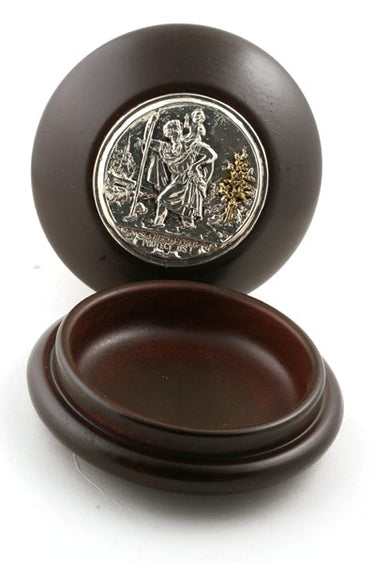 Handcrafted Wood Rosary Box with St. Christopher Icon