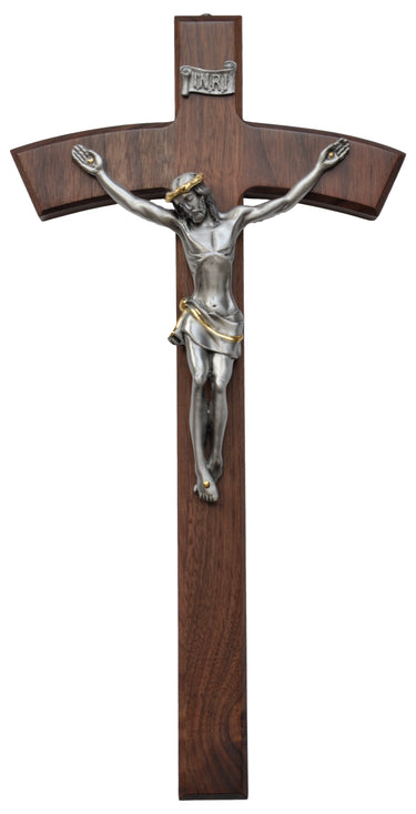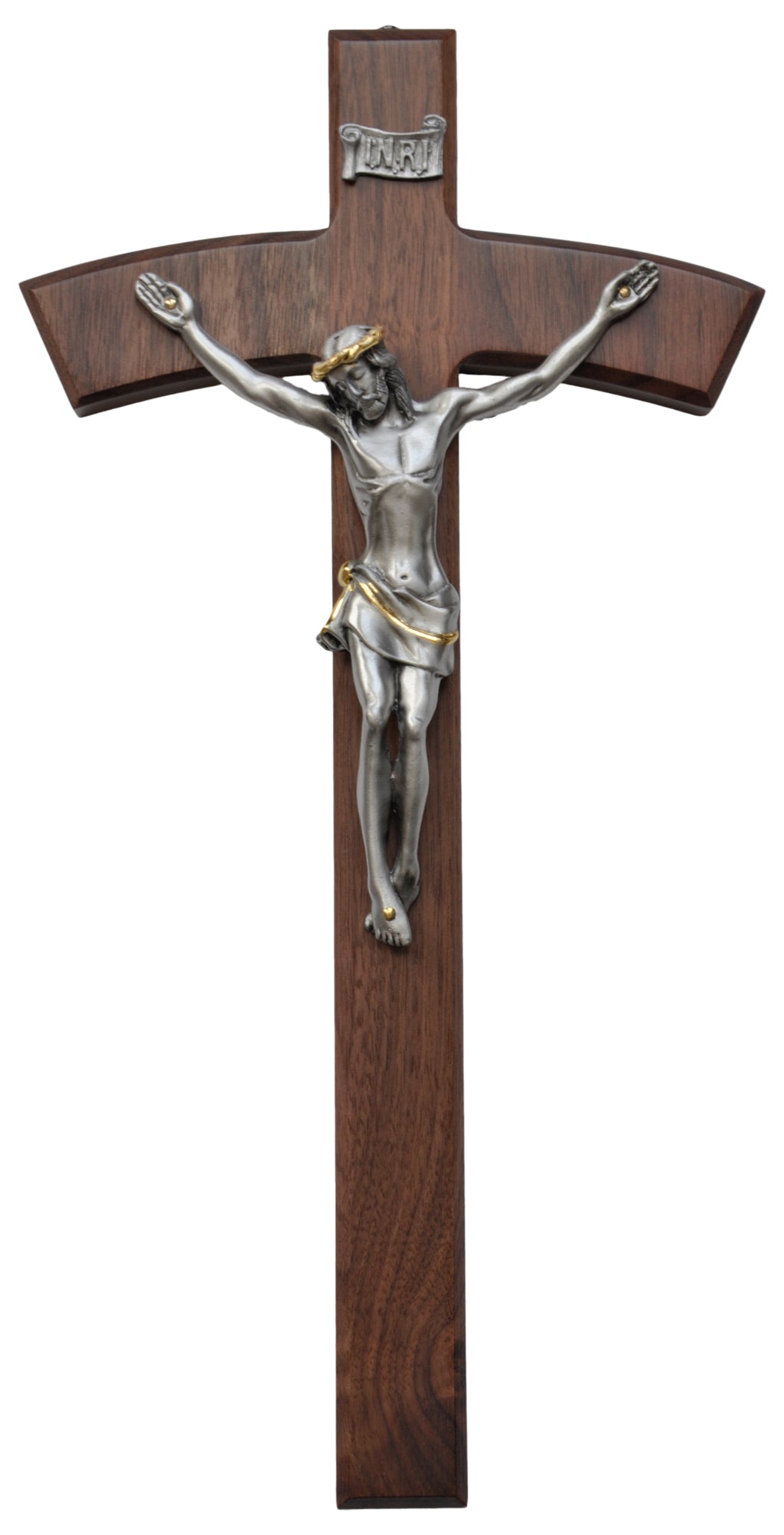 Wall Walnut Wood Crucifix Pewter Corpus 13